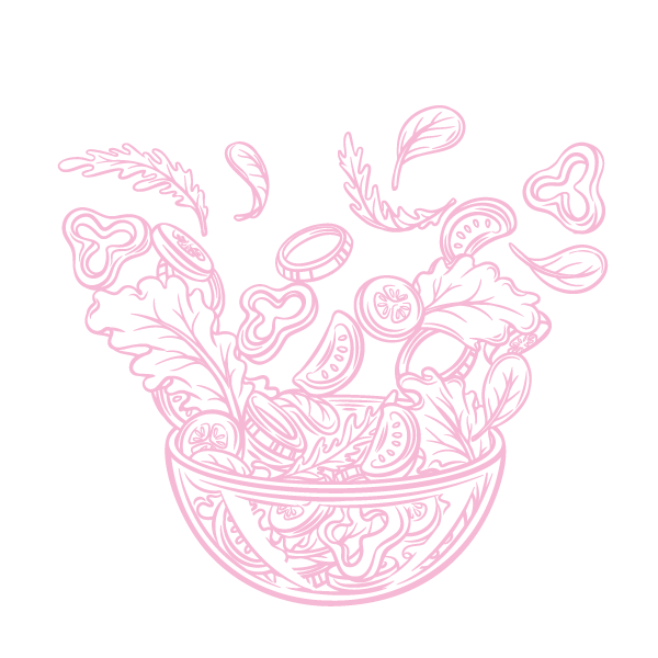 Riz sushi, tomates cerises, mousseline d’avocat au wasabi, mangue, chou rouge, édamames, betteraves Chioggia, pickles d’oignons rouges, coriandre, gingembre et graines de sésame dorées